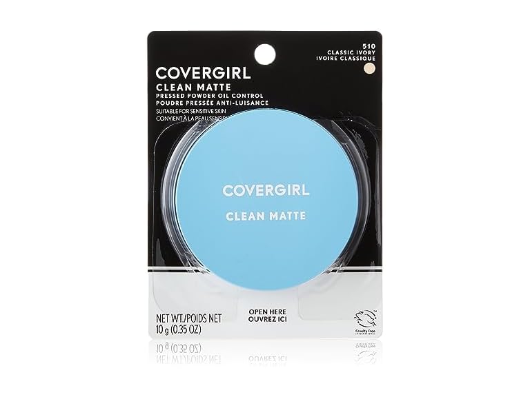 (1) COVERGIRL Clean Matte Pressed Powder, Oil Control Powder, 1 container, .35 Fl Oz, Face Powder, Oil Free Loose Powder, Matte Finish, Lightweight, Shine Free Formula, Leaves Skin Smooth and Clean Classic Ivory