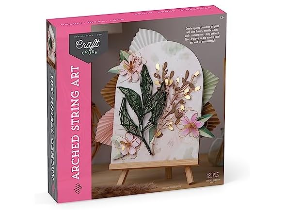 Unleash your creativity and add a touch of elegance to your space with the DIY building kit for arched string art. Whether you're a craft enthusiast looking for your next project or seeking a unique addition to your home décor, the intricate floral design will surely captivate your heart. Imagine crafting your very own piece of art that resonates with your style; perhaps a blooming flower that symbolizes growth or a lively spring scene. Craft Crush is renowned for transforming ordinary crafting into an extraordinary experience. With a wide array of fun DIY craft kits, they create opportunities for both teens and adults to delve into the world of creativity. Their craft supplies kit is more than just a pastime; it’s an invitation to craft, connect, and crush it with style! The 3D string art kit offers a multifaceted crafting experience, merging wire flowers, metallic leaves, and contemporary string art into a stunning piece. The DIY string art kits for adults and teens provide everything you need, ensuring a smooth crafting journey from start to finish. The final piece becomes a statement that reflects your artistic flair. Key features: -Creative expression through intricate designs. -Complete Kit for an instant crafting experience. -Interior accent to beautify your living space. -An enjoyable process that suits adults and teens. -Versatile theme allowing customization. Creating art pieces with our DIY craft kits for adults and teens is not just a process but a playful experience. The clear instructions guide you through each step, from arranging metal pins to weaving threads. Whether you're a seasoned crafter or a newbie, you'll find joy in seeing your creation come to life. Display it on the wooden easel, and let the compliments roll in. It's more than just art; it's a piece of you that beautifies your living space. Let your imagination bloom with this elegant and accessible crafting experience.