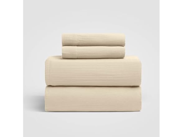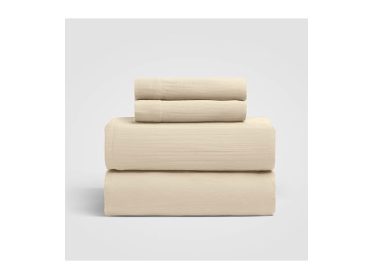 - (1) Crane Home Dune Queen Sheet Set, Sandy Beige 100% Cotton Gauze 4-Pc. Sheet Set, Oeko-TEX Certified Queen Sheets, with Flat Sheet, Fitted Sheet and 2 Pillowcases, Earth Tone Bedding