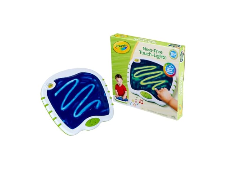 - (1) Crayola Toddler Touch Lights, Musical Sensory Toys for Toddlers, Essential Easter Basket Stuffers & Gifts, Light Up Drawing Pad, Mess Free Painting, Travel Activity, 2+
