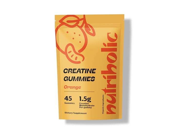 - (1) Nutriholic Creatine Monohydrate Gummies for Men and Women - Easy to Digest, Vegan, Gluten-Free, Non-GMO, 1.5g of Creatine per Gummy - 45ct (45 Count, Orange)