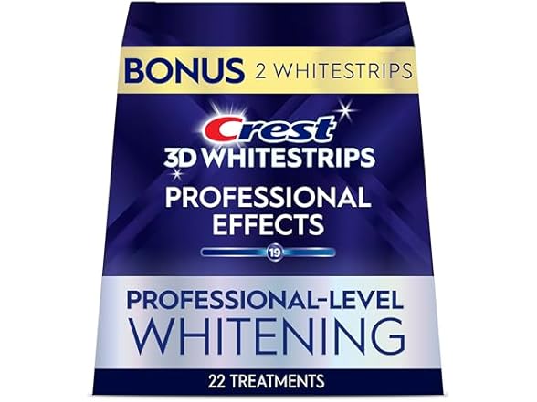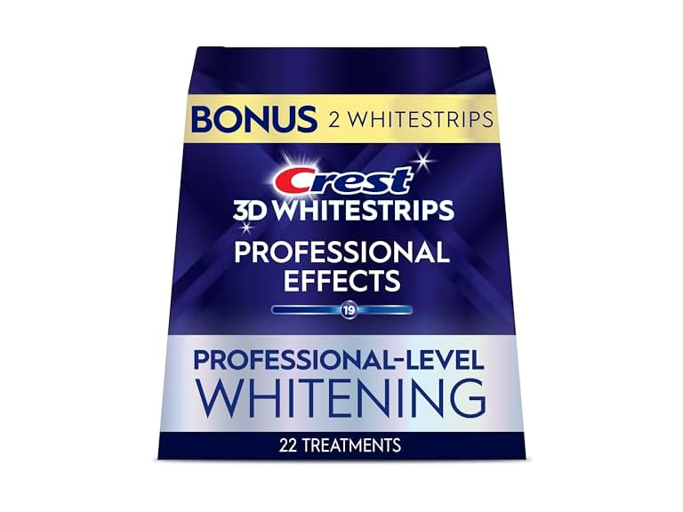 - (1) Crest 3D Whitestrips Professional Effects – Teeth Whitening Kit, 22 Treatments (20 + 2 Bonus), Each with 1 Upper/1Lower, 44 Strips – Crest 3DWhite Teeth Whitening Strips