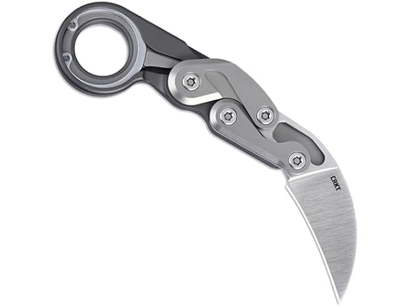 - (1) CRKT Provoke Folding Knife with Kinematic: Morphing Karambit, D2 Steel Plain Edge Blade, Gray Aluminum Handle, Pocket Clip, 4040G