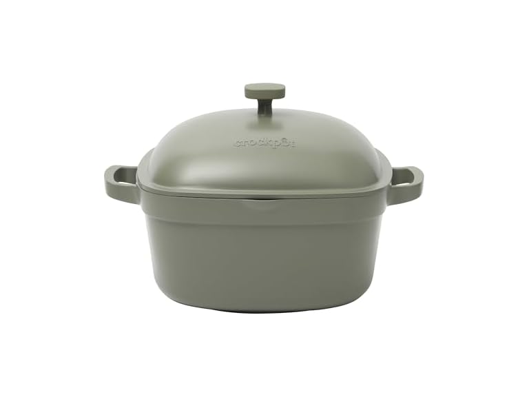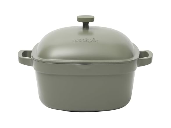 - Crock-Pot Northvale Cast Aluminum Lightweight Durable 5.2 Quart Heavy Duty Dutch Oven Pot With Lid, Oven Safe, Dual Handles - Matte Sage Green