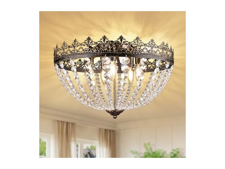 - Brilliant Crystal Chandelier: Why settle for ordinary? Transform your home with this stunning crystal chandelier! In contrast to lesser options that feature only a few low-quality crystals, this modern chandelier boasts 24 strands of crystal chains and a total of 312 crystals. Our flush mount chandelier shows gorgeous K9 crystals that sparkle with outstanding transparency and shine. Elevate your space with this elegant brown closet chandelier, perfect for adding charm and classic to any room.