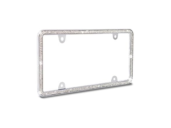 - (1) JR2 Shining Double Row Crystal Metal License Plate Frame+Free Screw Caps (White)
