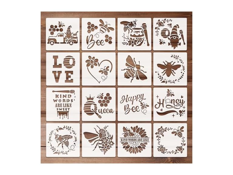 - (1) crystine 16 Pcs Bee Stencils for Painting - 6 Inch Reusable Honey Bee Stencils Honeycomb Theme Templates for Painting on Furniture, Canvas, Wall, Home Decor