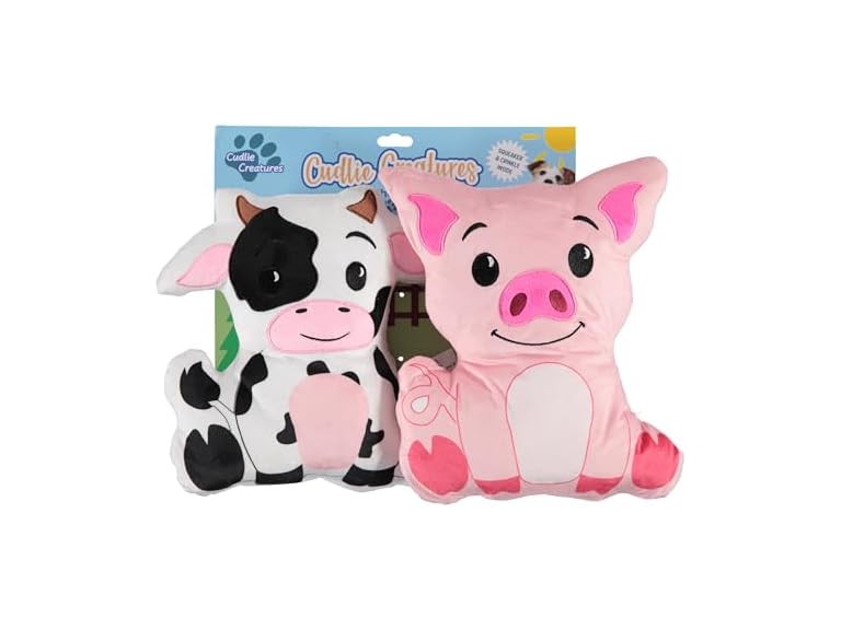 - (1) Cudlie 2 Pack Plush Dog Chew Toys โ Large 10" Squeaky Toys for Small & Medium Dogs โ Soft, Durable & Engaging Plush Pet Toy Setโ (Safari, Farm & Woodland Animal Themes)
