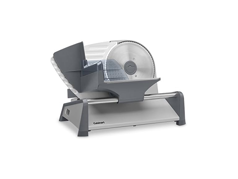 - (1) Cuisinart Kitchen Pro Food Slicer, Meat Slicer with Slice Control Knob Adjusts from 1/32" to 1/2" to Slice Bread, Roasts, and Firm Cheeses, Removable 7.5" Stainless Steel Cutting Blade, FS-75, Gray