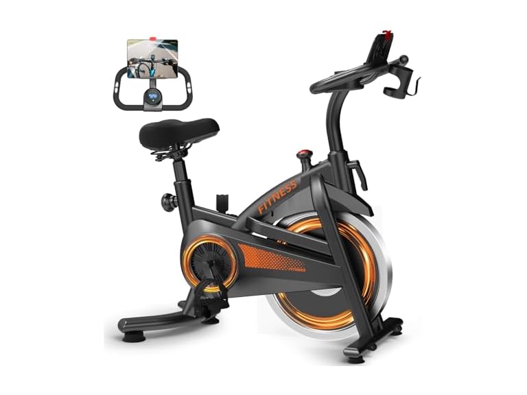 - Designed for Modern Life: The integrated front transport wheels let you easily tilt and move this stationary bike across the room for storage or cleaning. Plus, the built-in tablet holder and water bottle holder keep you entertained and hydrated, making long workouts fly by