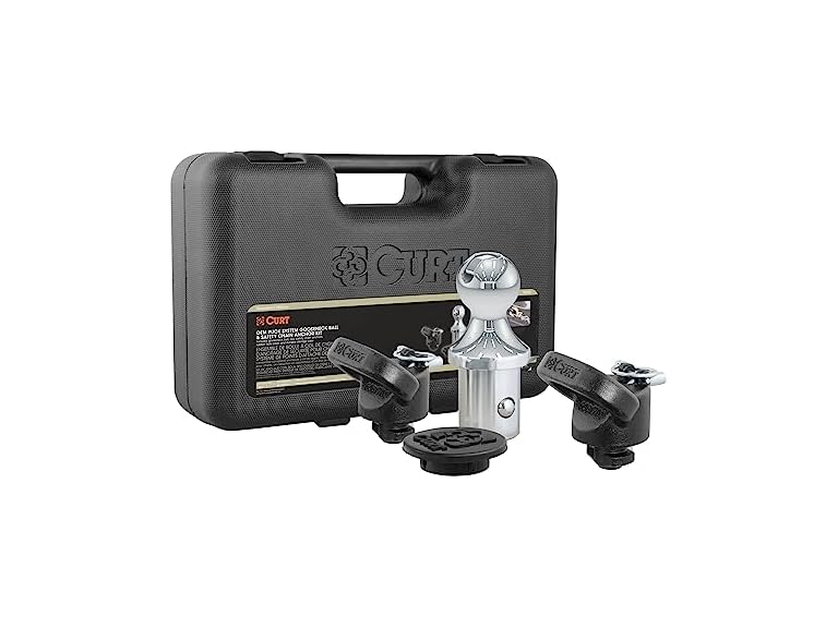Outfitting your pickup to tow a heavy-duty flatbed or livestock trailer is easy with the CURT OEM puck system gooseneck ball and safety chain anchor kit. The components of this 30K kit quickly and easily drop into the truck bed pucks, instantly equipping the truck for gooseneck towing. The kit includes a gooseneck ball, safety chain anchors, a rubber hole cover and a durable storage case. It is designed specifically for the Ram puck system and cannot be installed without it. It is rated for 30,000 lbs. GTW and 7,500 lbs. vertical load. The OEM puck system gooseneck ball perfectly fits into the center ball hole and provides a 2-5/16" ball to fit most standard gooseneck trailers. It features with a patented installation system, operating with a simple quarter-turn latch lock for ease of use and a secure mount. Retention balls, built into the shank, keep the gooseneck ball fixed into the receiver hole and keep your trailer locked on tight. Also included in the kit are CURT OEM puck system gooseneck safety chain anchors. Like the gooseneck ball, these patented anchors are made specifically for Ram pickup trucks with the puck system and provide a reliable connection for your gooseneck trailer. They feature a simple drop-in installation system with no tools required, and they offer large safety chain loops to accept heavy-duty clevis hooks. These safety chain anchors are constructed from heavy-duty, cast steel and have a highly durable powder coat finish. Finally, the Ram puck system gooseneck kit includes a tough rubber hole cover to keep water, dirt, grime and rust out of the gooseneck ball hole. The cover installs with a friction fit and helps extend the life of your Ram gooseneck hitch. We also include a durable plastic storage case with each kit to keep the components protected and together for easy storage. The case can be stored inside your truck or truck bed tool box to keep the ball and anchors on-hand whenever you need them.