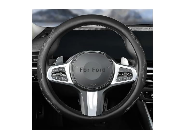 - Custom Fit for Ford Steering Wheel Cover, Leather Double Sided Car Steering Wheel Covers, Anti-Slip Breathable, for Ford Accessories (Black,for Ford)
