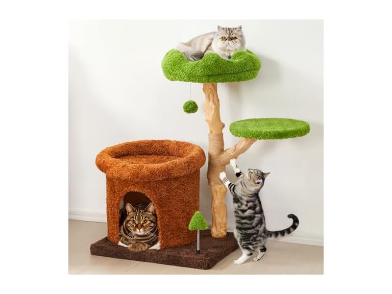 - Space-Saving, Multi-Cat Friendly Design: With multiple levels, a cozy cat bed, and hideaway spots, this cat jungle gym gives 2–3 cats their own zones to nap, scratch, and explore—all without taking up too much floor space. Great for small homes or apartments.