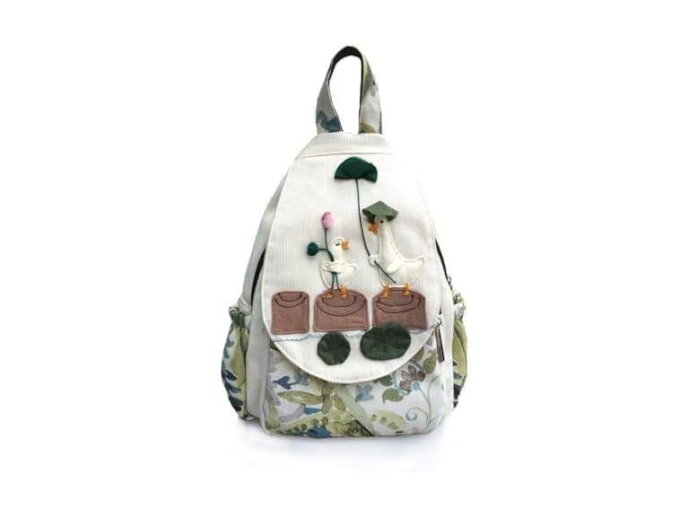 - (1) XIAOLZSL Beautiful Cute Fashion Canvas Casual Day Women Mini Backpack, Arts Handmade Solid Ducks Cute Style Backpack