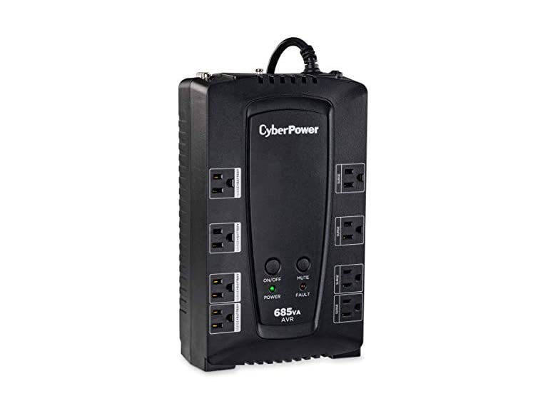 - CyberPower CP685AVRG AVR UPS System, 685VA/390W, 8 Outlets, Compact Black