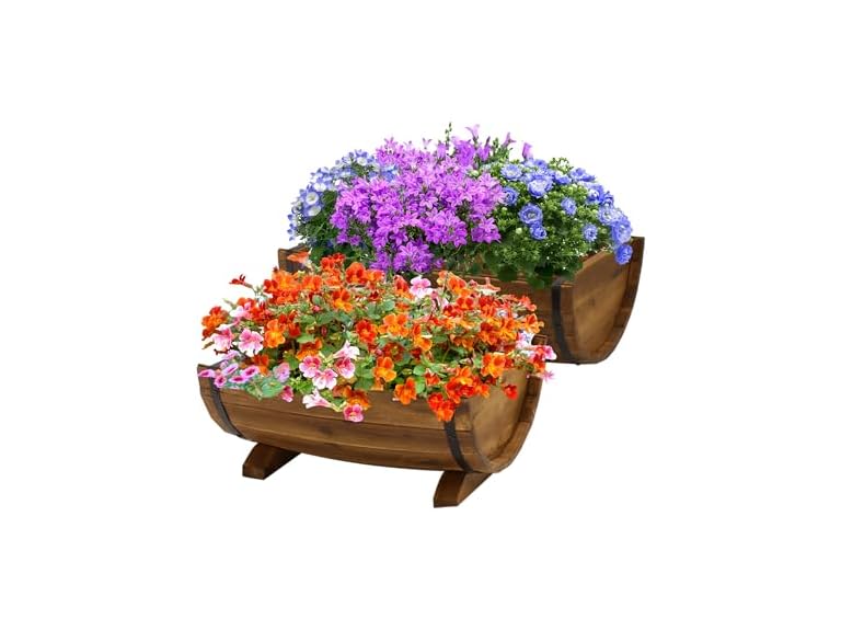 - DURABLE MATERIALS: Not only visually appealing, the strength of fir wood combined with its protective oil coating provides a durable and reliable half barrel planters outdoor for your plants