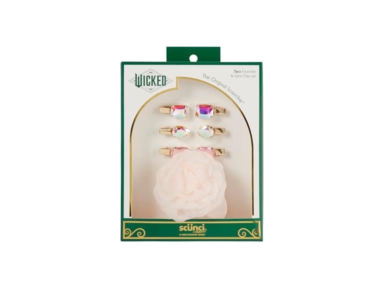 (1) Wicked Glinda Scrunchie & Hair Clip set - hair clips - hair accessories - hair accessories for girls - gifts for her - Scunci by Conair - 7 piece
