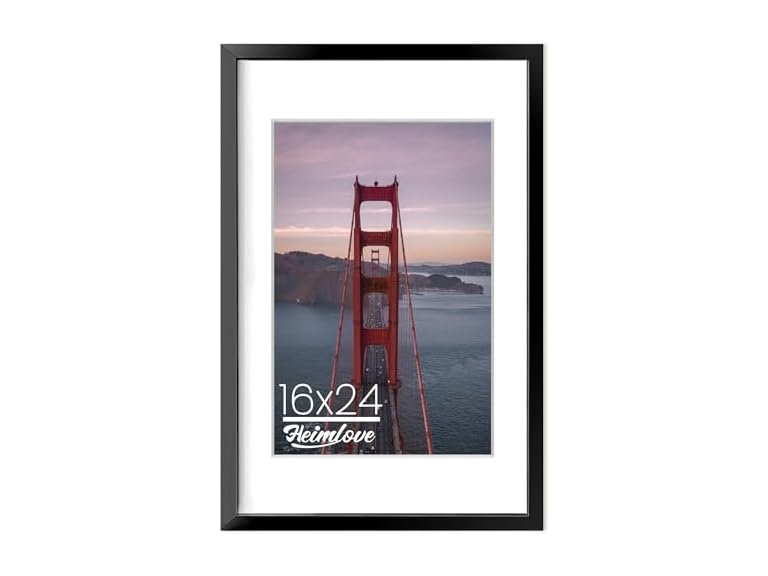 - 16 x 24 in PACKAGE INCLUDES - Set of 1 Photo frame, 16 x 24 in frames 1 set, suitable for standard 12x18/16x24 inch, Classic Aluminum Frames. It comes with one white mat opening, fitting a 12x18 picture with the mat or a 16x24 picture without it. Simple and Modern Look to display your photos or art prints.