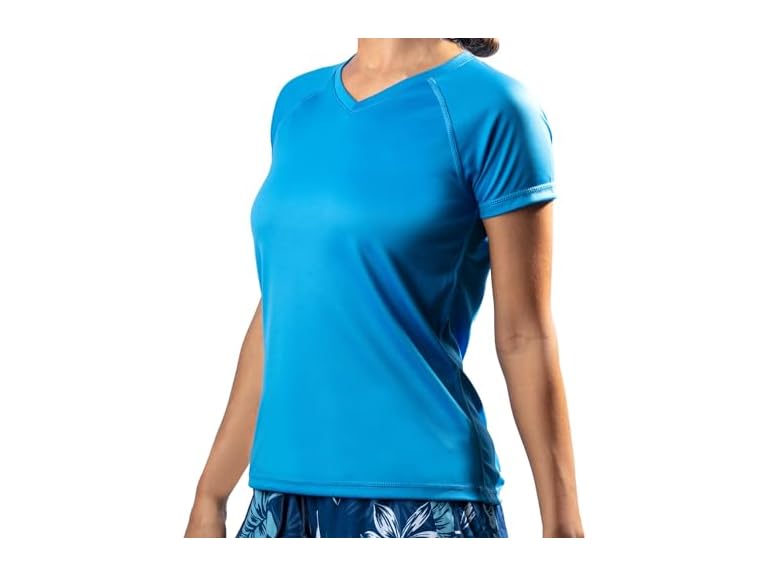 - (1) Kanu Surf Women's UPF 50+ Short Sleeved Active Swim Shirt Rashguard & Workout Top, Solid Royal, Large
