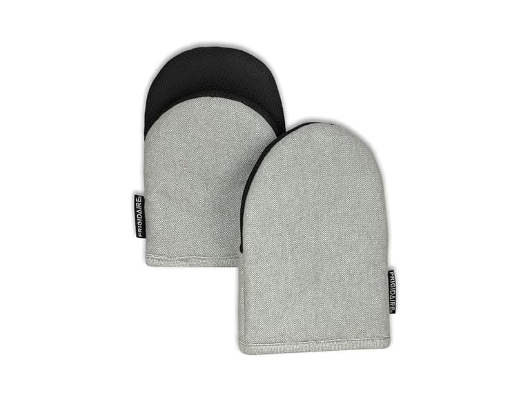 - (1) Frigidaire Sasha 2-Pack Cotton and Neoprene Mini Oven Mitts, Heat Resistant, Anti-Slip, Machine Washable, 5.25" x 8", Grey, Set of 2