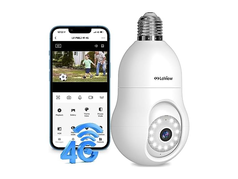- 4G LTE & Enhanced Security: Built-in IoT SIM works with Verizon, T-Mobile, AT&T; auto-selects best signal; covers areas WiFi can't; installation requires only an E27 bulb base; Monthly data plans: $14.99 or discounted $149.99/year