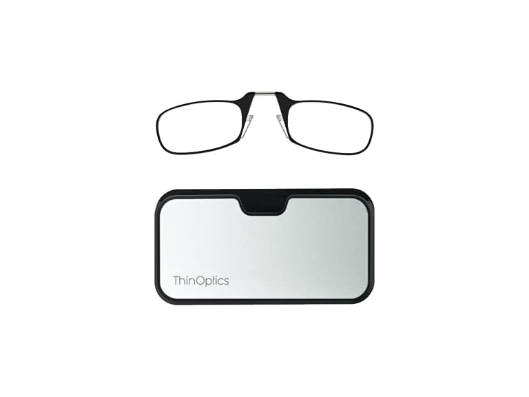 - (1) ThinOptics Universal Case and Readers Rectangular Reading Glasses, Silver Black Metal Pod with Black Frames, 1.5 Strength