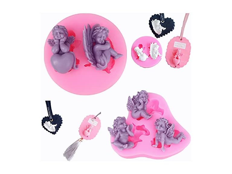 - (1) FEIYU BUY 2PCS 3D Angel Baby Shape Fairy or Angel with Flowers Silicone Cake Decorating Mold, for Fondant Cake Decoration, Cupcake Topper,Nice Crafting, Polymer Clay, Jewelry Making,Kitchen Accessories