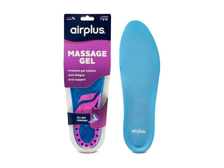 - (1) Airplus Super Gel Cushion Insole for Women’s Shoe Sizes 5-11 – All-Day Comfort, Shock Absorption, Gel Zones, Full-Length Footbed, Trim-to-Fit for Casual, Athletic, Dress Shoes, and Work Boots