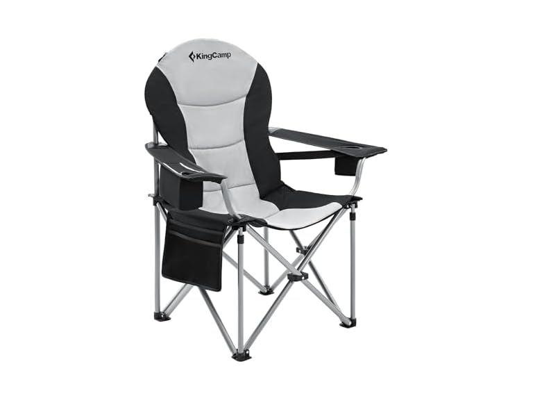 - (1) KingCamp Oversized Camping Folding Chair with Lumbar Support, Heavy Duty Ergonomic Padded Arm Chair with Cooler Bag, Cup Holder, Portable for Outdoor