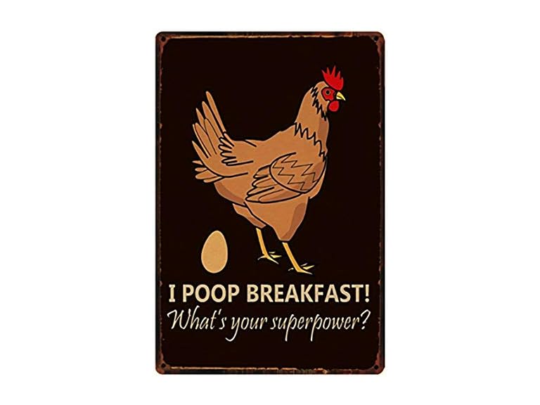 - (1) Lenrius I Poop Breakfast!Chicken Crossing Farm Fresh Eggs Metal Tin Sign 8x12inch Home Kitchen Bar Pub Farm Wall Decor -1