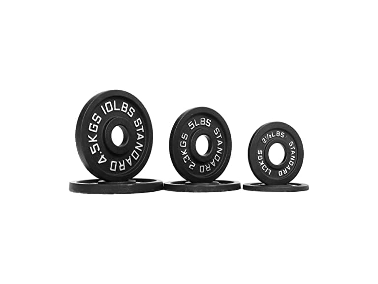 - Made of solid cast iron with a 2-inch center hole fits any Olympic bar with diameter 2” or less; Can be used with 2” dumbbell bars too