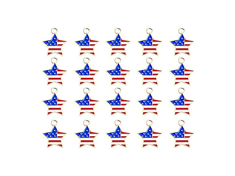 - (1) Ximkee 20Pcs Red White and Blue American Flag Star Heart Shaped Charm Pendant Gold Plated Dainty Ornament Jewelry Making Independence Day Decoration