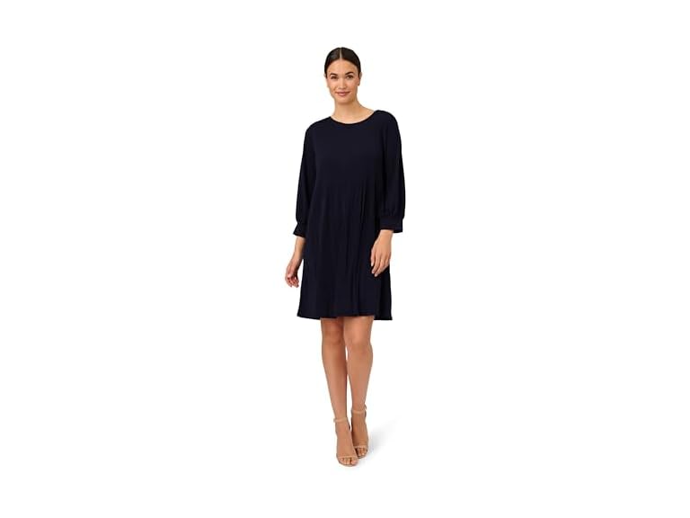 - (1) Adrianna Papell Women's Pleated Knit Crew Neck Dress, Blue Moon
