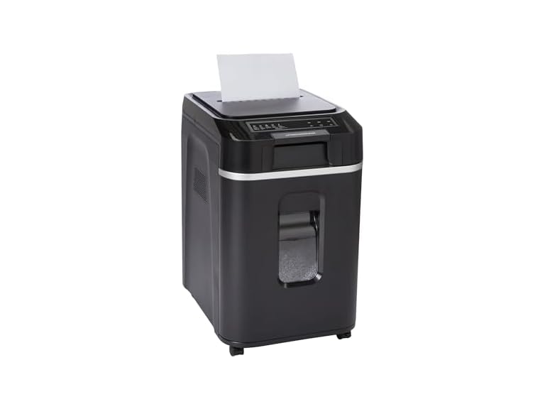 - 200 sheet automatic shredding capacity and 10 sheet manual shredding capacity. No need to remove staples