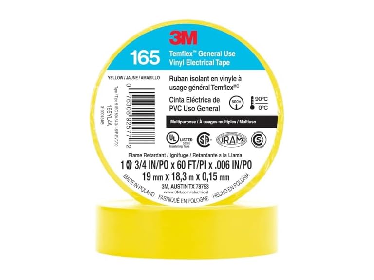 - (1) 3M Temflex 165 Solvent-Free Vinyl Electrical Tape: 3/4 in x 60 ft. (Yellow)