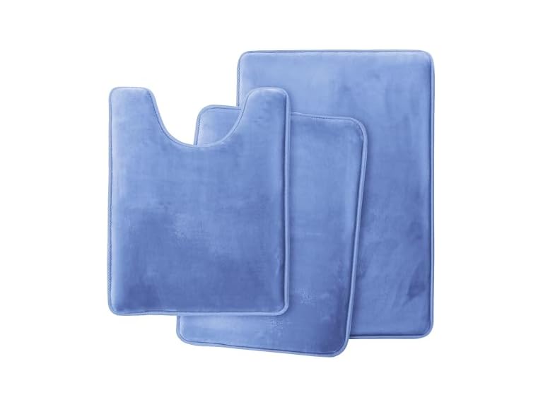 - (1) Clara Clark Bathroom Rugs Sets 3 Piece, Velvet Memory Foam Bath Mat - Non-Slip, Machine Wash, Bath Rugs - Dries Quickly, Ultra Soft Bath Mats for Bathroom, Calm Blue
