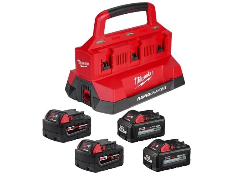 - (1) Milwaukee 48-59-1865POC M18 18V Lithium-Ion Battery Packs (2x5.0Ah, 2x6.0Ah) with PACKOUT 6-Port Rapid Charger