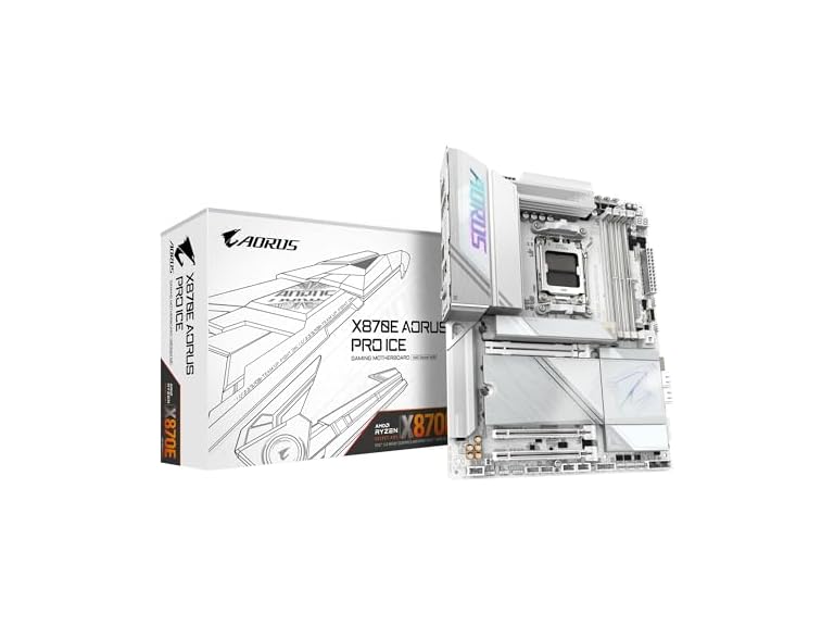 - (1) GIGABYTE X870E AORUS PRO ICE Motherboard - Supports AMD Ryzen 9000 CPUs, 16+2+2 Phases Digital VRM, up to 8000MHz DDR5 (OC), PCIe 5.0x3, Wi-Fi 7, 2.5GbE LAN, USB 4