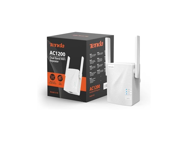 Expand your WiFi network with the Tenda A18. The Tenda A18 WiFi amplifier is designed to take your WiFi to the next level. With a dual-band speed of AC1200 Mbps and two 2dBi antennas, it ensures wide coverage and strong signal stability, even through walls. Smart technology for effortless use Automatic channel selection selects the best Wi-Fi channel, so your network stays interference-free. The intelligent LED indicator helps you find the optimal place for installation. With just a few steps, your amplifier is ready - no complicated technology required! Perfect for home and office Whether you're enjoying streaming, gaming or working online, the Tenda A18 delivers reliable and fast connections. With its compact design, it fits seamlessly into any environment. Worry-free with long term warranty Tenda offers a three-year warranty that ensures long-lasting performance. Say goodbye to connection gaps and enjoy a seamless Wi-Fi experience!