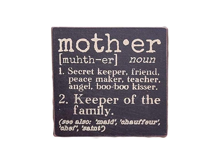 - Wood sign has vintage look and reads -- mother [muhth-er] noun 1. Secret keeper, friend, peace maker, teacher, angel, boo-boo kisser. 2. Keeper of the family. (see also 'maid', 'chauffeur', 'chef', 'saint')