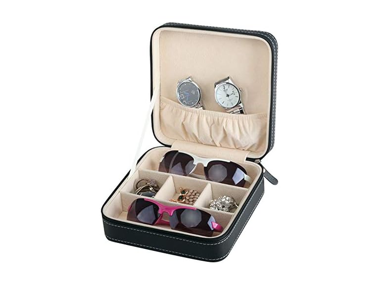 - MULTIFUNCTION STORAGE:3-slot sunglasses box measures18 x 18 x 6.5cm and weighs 400 grams, with removable small dividers to make room for other accessories.It's like a storage cufflinks.Bracelets and other jewelry.It can bring great convenience to your travel