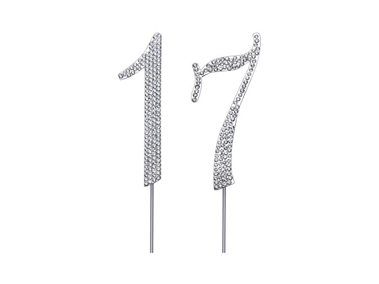 - (1) MAGJUCHE Silver 17" Crystal Cake Topper, Number 17 Rhinestones 17th Birthday Cake Topper, Boy or Girl Birthday or 17th Anniversary Party Decoration Supply