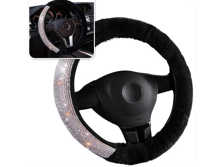Zone Tech Plush with Diamond Bling Steering Wheel Cover - Premium Quality Diamond Bling Crystal with Plush High-grade Imitation Cashmere Wool Steering Wheel Cover