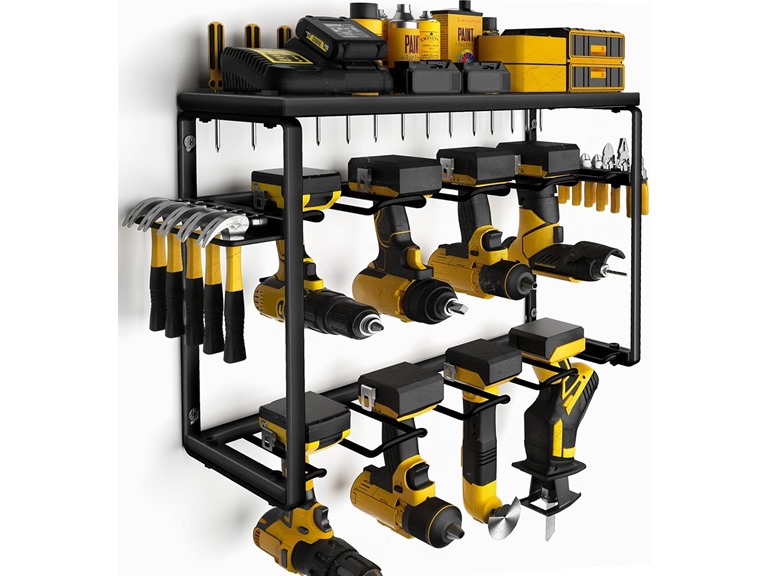 - High Load Capacity: The tool storage rack is designed by professionals. Made of heavy-duty steel. Painted matte under high temperature. Smooth texture that is not easy to rust. The edge of the drill stand is doubly reinforced for extra strength. Non-slip. Can support the load for long. Each cordless drill storage rack can hold up to 100IB