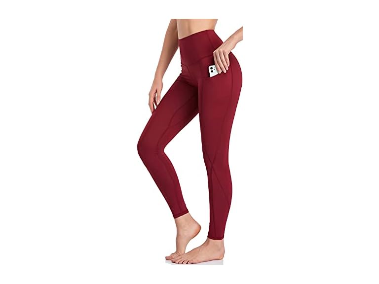 - (1) CAMMUR Women's Naked-Feeling High Waisted Leggings, Buttery-Soft Tummy Control Yoga Pants with Pockets for Workouts - 7/8 Wine Red