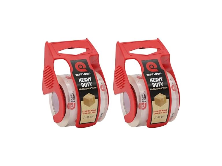 - (1) Tape Logic Heavy Duty 2in x 25yd Clear Packaging Tape with Dispenser (2-Pack), Strong Clear Packing Tape Roll Ideal for Shipping & Moving Boxes