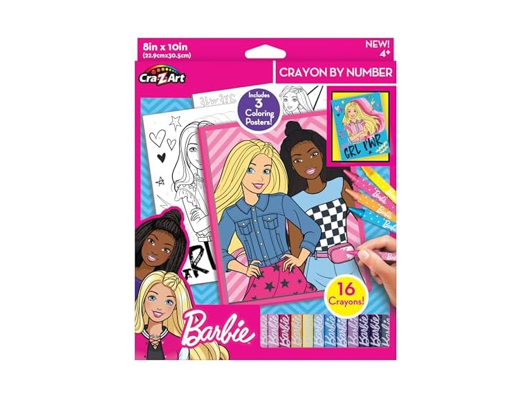 - (1) Cra-Z-Art Barbie Crayon by Number Set, 3 Coloring Posters, 16 Crayons, 8x10 inches, Ages 4+