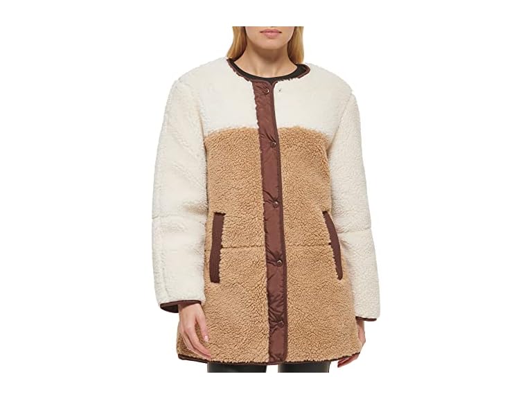 - (1) Levi's Women's Midlength Sherpa Coat With Reversible Wear, Camel, X-Small