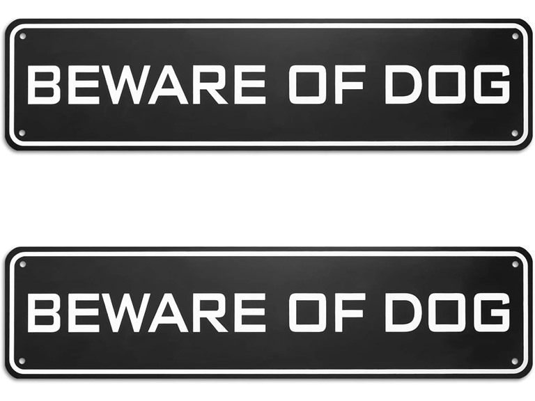 - dequate quantity: totally 4 pieces of beware of dog warning signs are packed together in this package, which are in classic colors, easy to catch people's attention, enough for you to place in different places