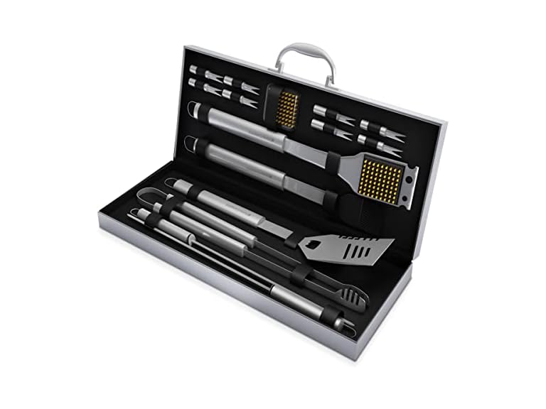 - HEAVY-DUTY STORAGE CASE - Neatly store and organize these BBQ grill accessories in the included case, which also makes it easy to take all these grill tools to picnics, campsites, tailgating parties, and other outdoor events.